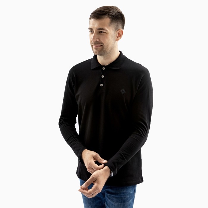 Поло мужское с длинным рукавом, цвет чёрный, размер 54