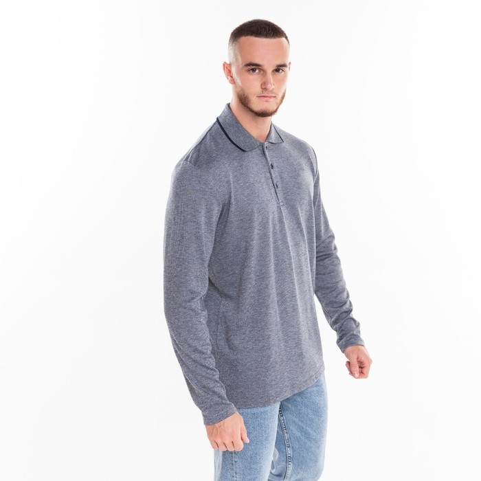 Поло мужское с длинным рукавом, цвет серый/синий, размер М