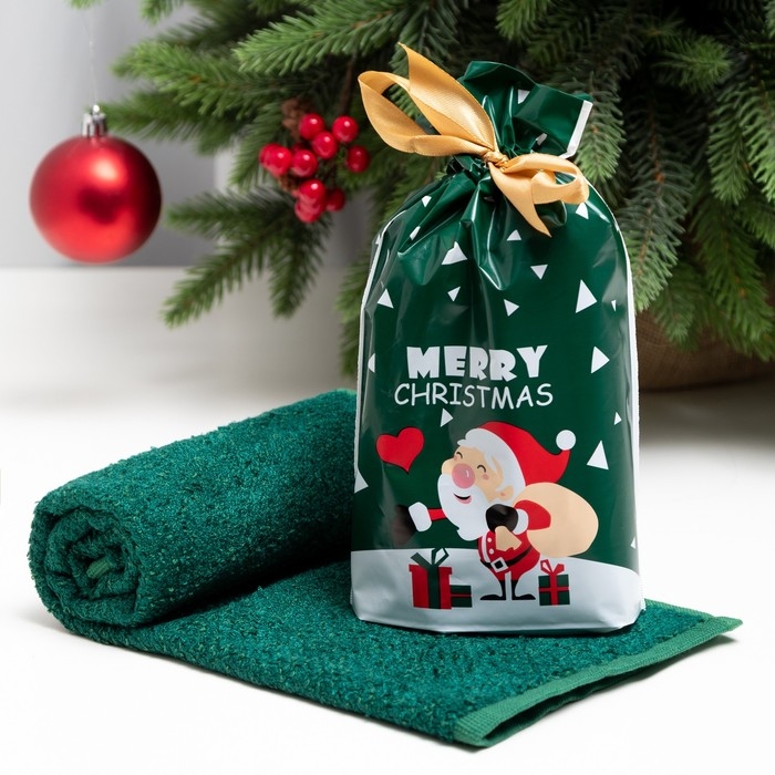 Полотенце махровое Экономь и Я "Дед Мороз" 30*60 см, цв. зелёный, 100% хл, 340 г/м2