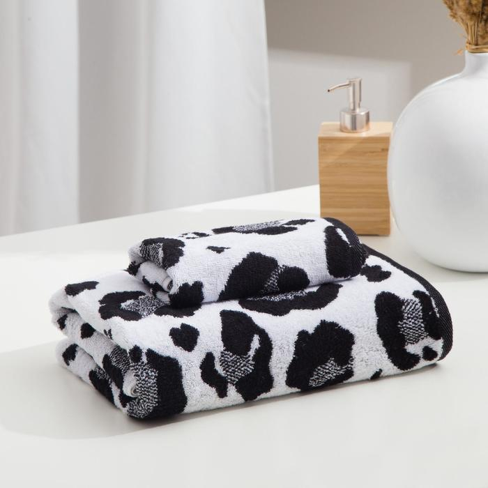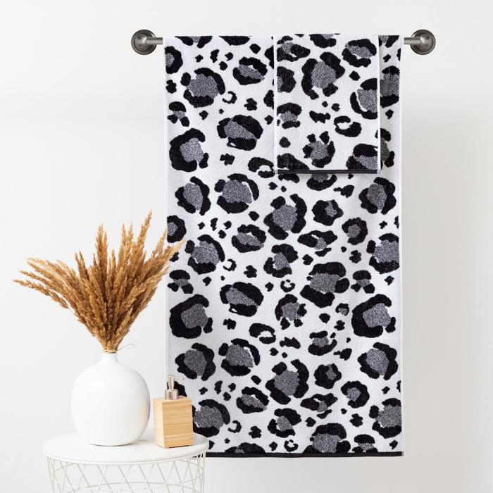 Полотенце махровое Этель ЧБ «Снежный барс», пестроткань, 70х130 см