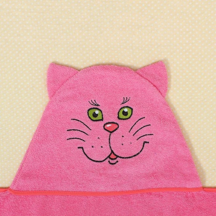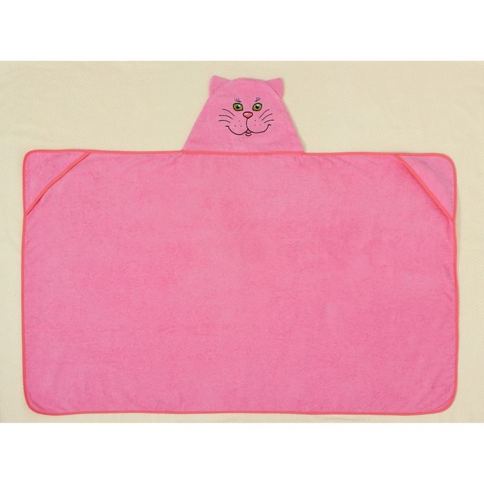 Полотенце-накидка махровое «Котик», размер 75×125 см, цвет розовый, хлопок, 300 г/м²