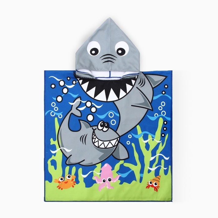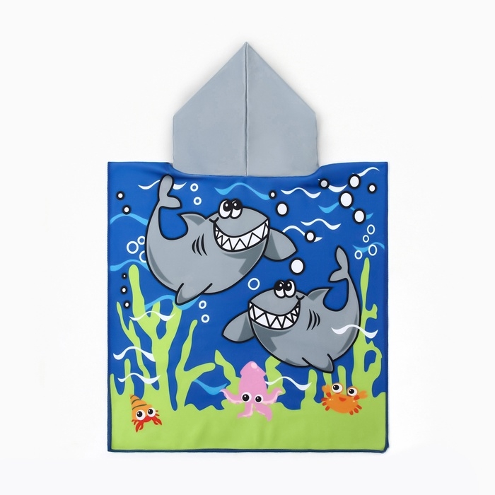 Полотенце-пончо детское махровое Крошка Я "Акулы" 60*120см, 100% пэ, микрофибра