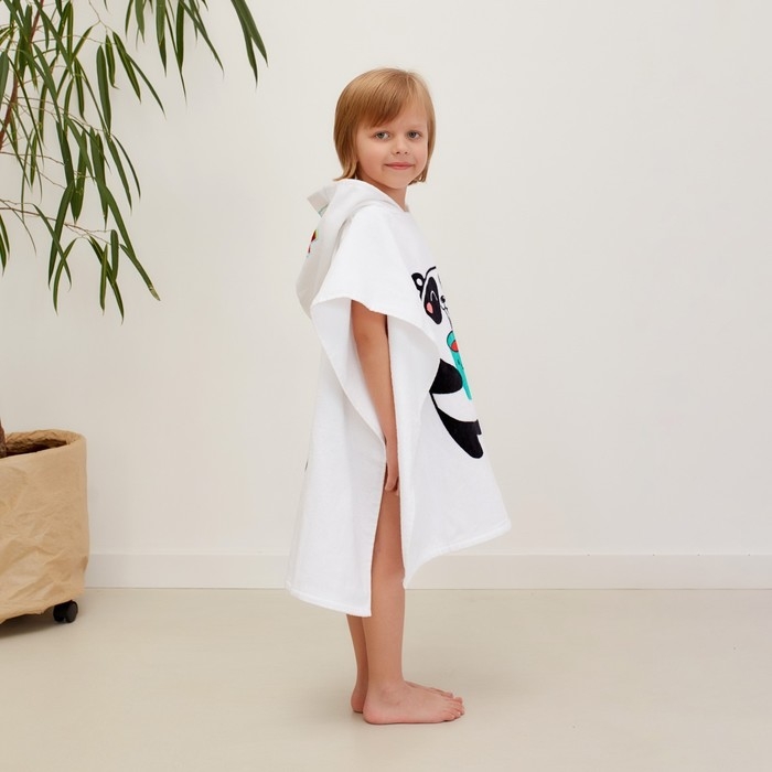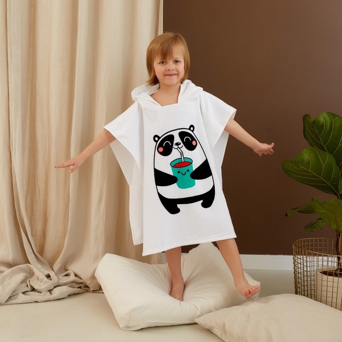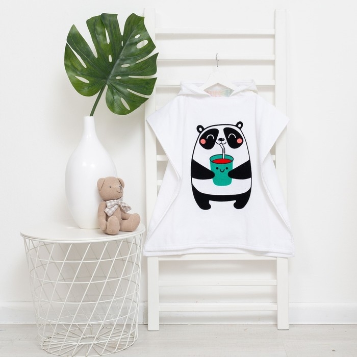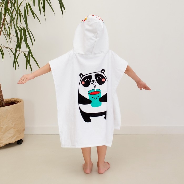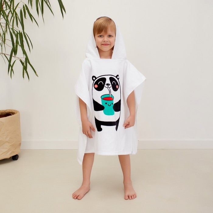 Полотенце-пончо детское махровое Крошка Я «Панда» 60х120см, 100% хлопок, 300гр/м2