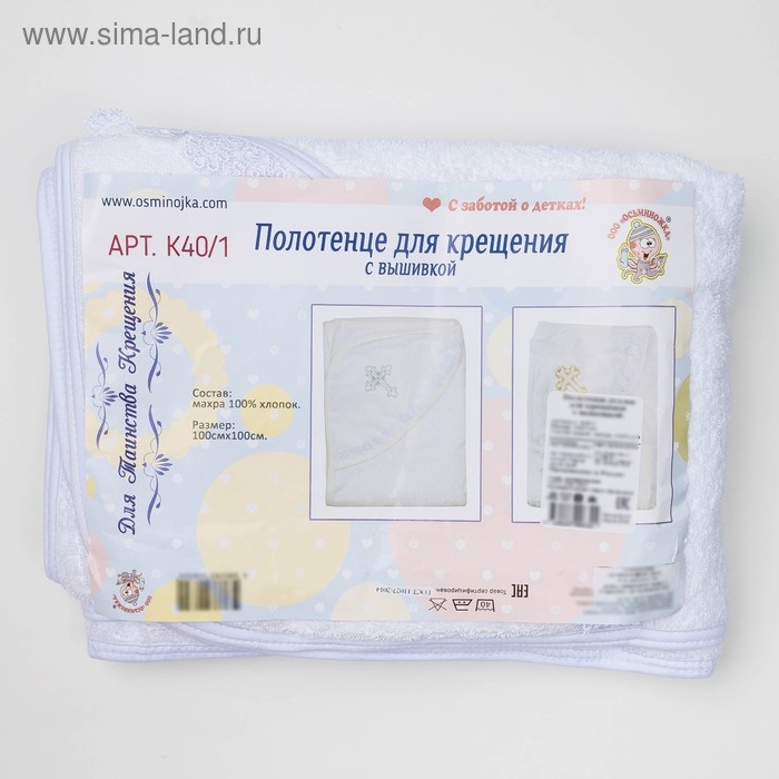 Полотенце-уголок для крещения с вышивкой, размер 100х100см, цвет белый, К40/1