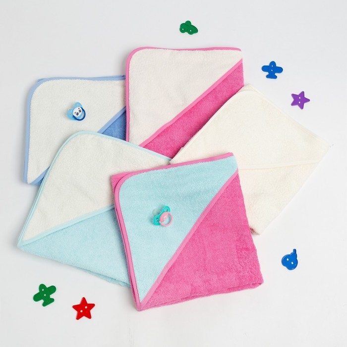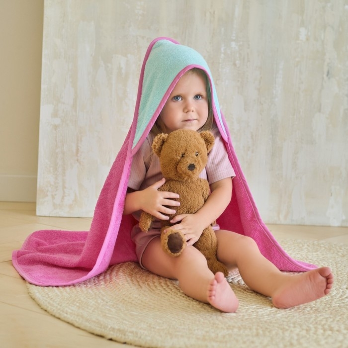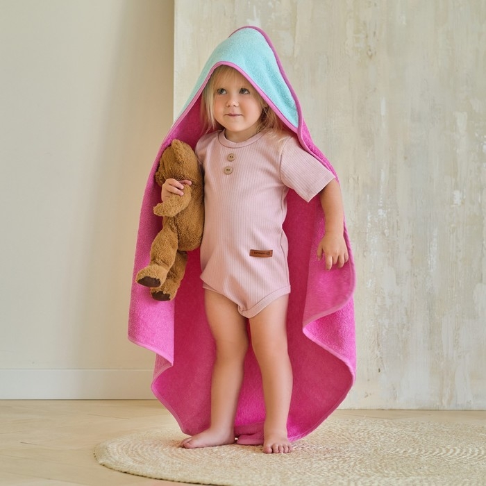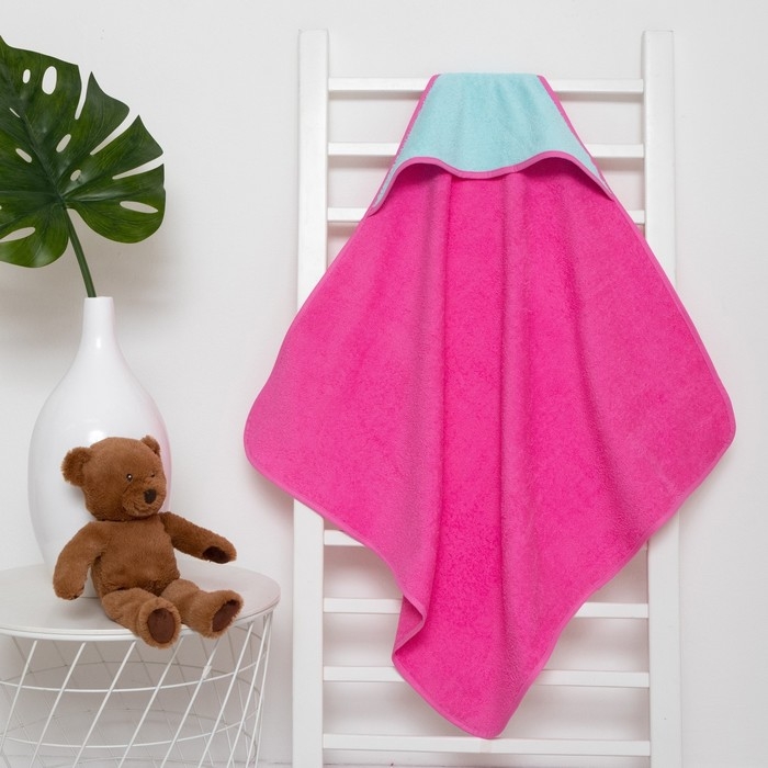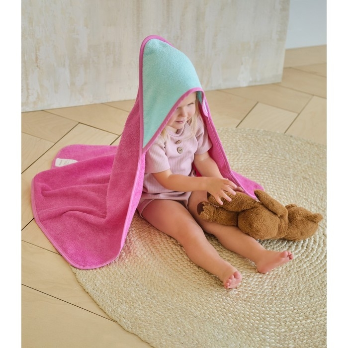 Полотенце уголок махровое Крошка Я, 75х75 см, цвет мятный/розовый, 100% хлопок, 360 г/м2