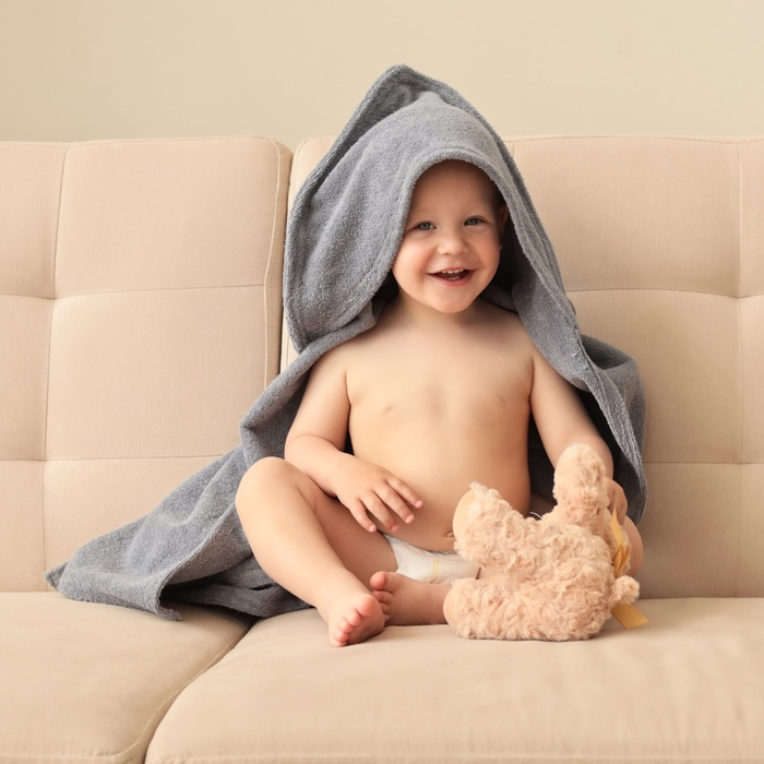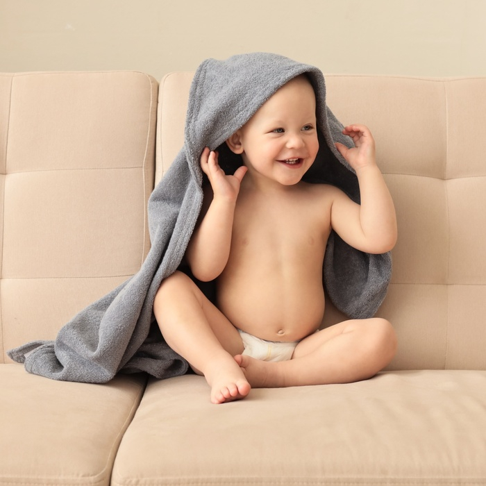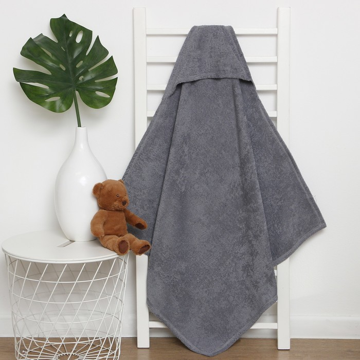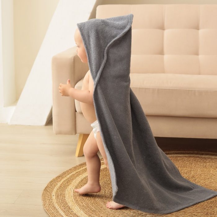 Полотенце-уголок махровый "Крошка Я" 85х85 см, цвет серый, 100% хлопок, 320 г/м2