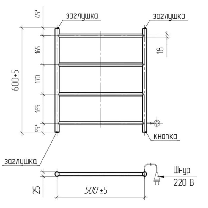 Полотенцесушитель электрический ТЕРА "Электра", 500х600 мм, 4 перекладины, белый