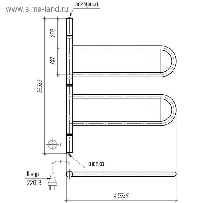 Полотенцесушитель электрический ТЕРА "Флюгер", 450х500 мм, поворотный