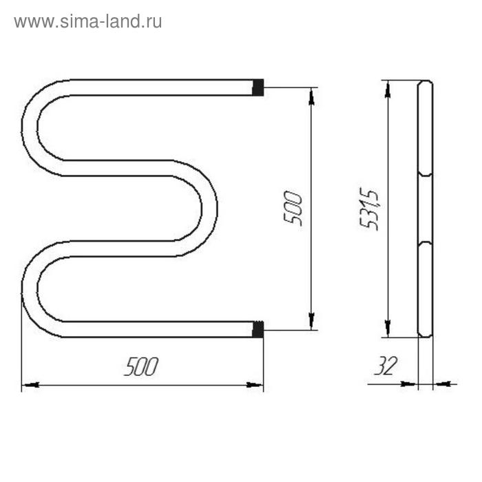 Полотенцесушитель водяной ТЕРА, М-образный, 500х500 мм, D=32 мм, наружная резьба 1"
