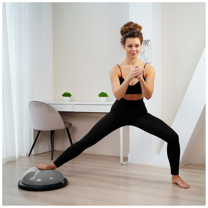 Полусфера представляет собой сбалансированную эластичную платформу в виде полусферы. Используется для проведения силовых, гимнастических или аэробных тренировок. Занятия на полусфере помогают проработать все группы мышц, улучшить выносливость и выдержку.