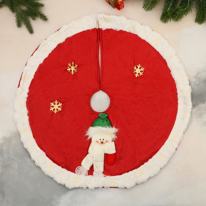 Полянка под ёлку "Сияние полос" Снеговик и снежинки, d-60 см, бело-красный