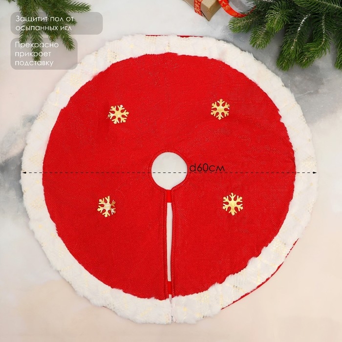 Полянка под ёлку "Сияние полос" снежинки, d-60 см, бело-красный
