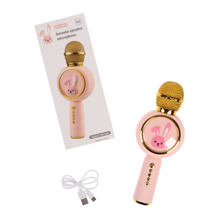 Портативный караоке микрофон, 5 Вт, 1200 мАч, LED, розово-золотистый