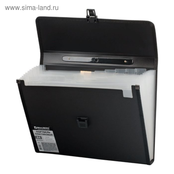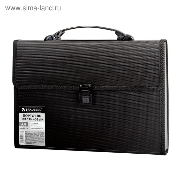 Портфель пластиковый А4, 332 х 245 х 35 мм, 13 отделений, текстура, пластиковый индекс, чёрный