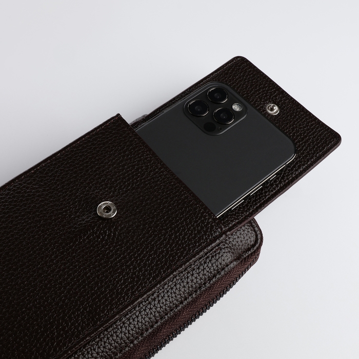 Портмоне-клатч мужское на молнии, карман для телефона, цвет коричневый