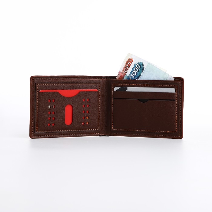 Портмоне мужское без застёжки, для купюр, для карт, цвет коричневый