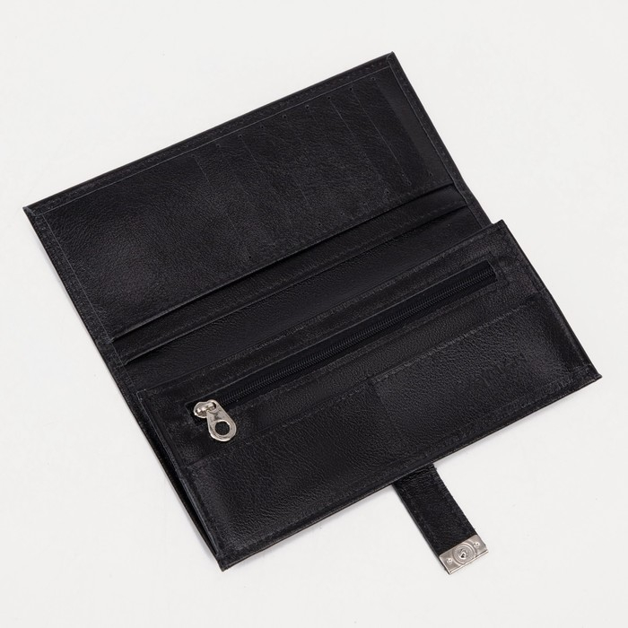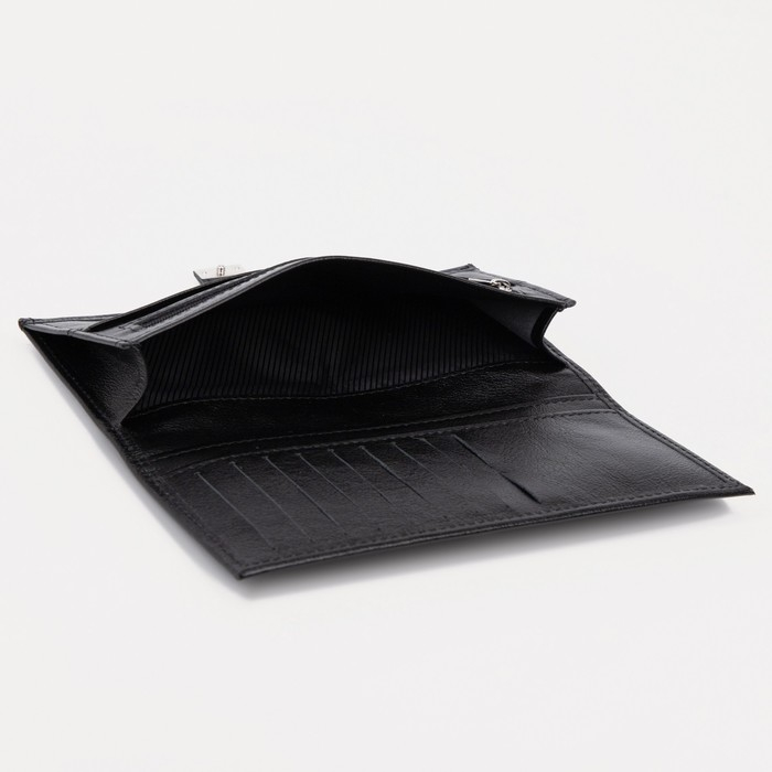 Портмоне мужское на кнопке, для купюр, для карт, для монет, цвет чёрный