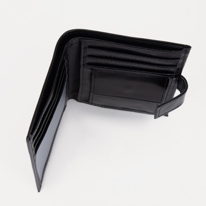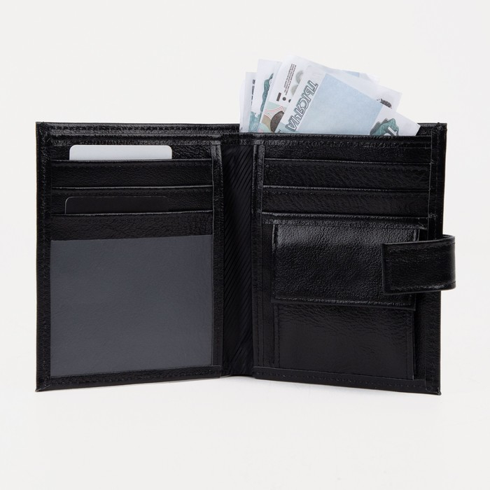 Портмоне мужское на кнопке, для купюр, для карт, для монет, цвет чёрный