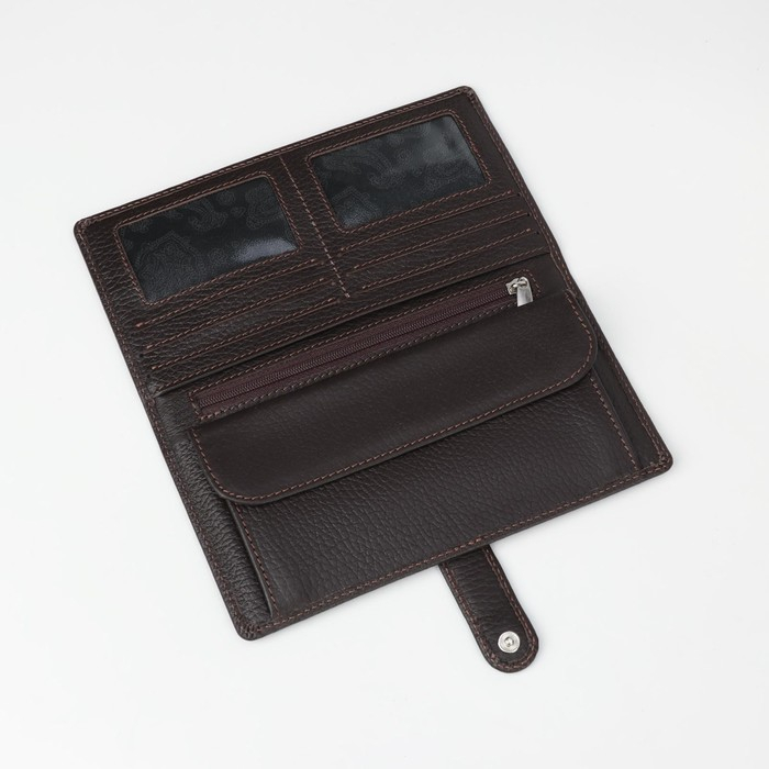Портмоне мужское на кнопке, для купюр, для карт, для монет, цвет коричневый