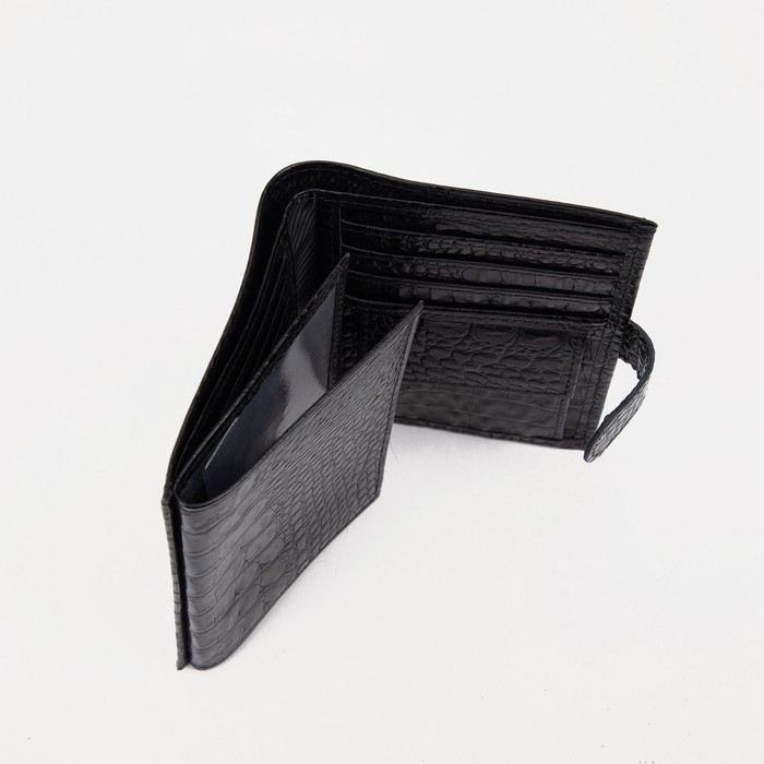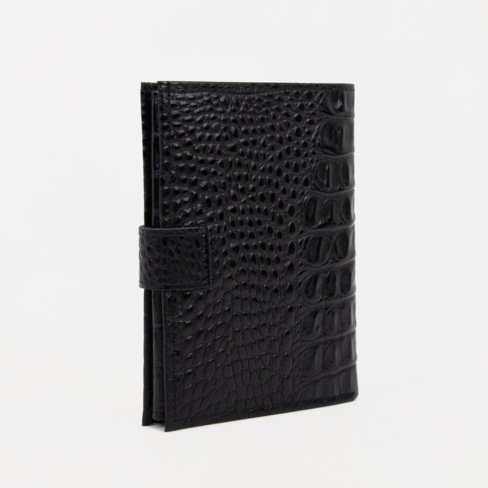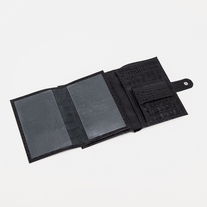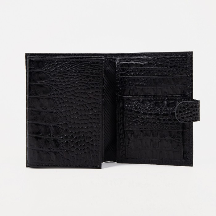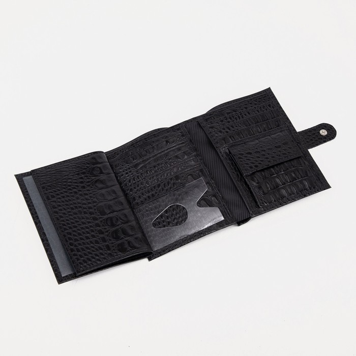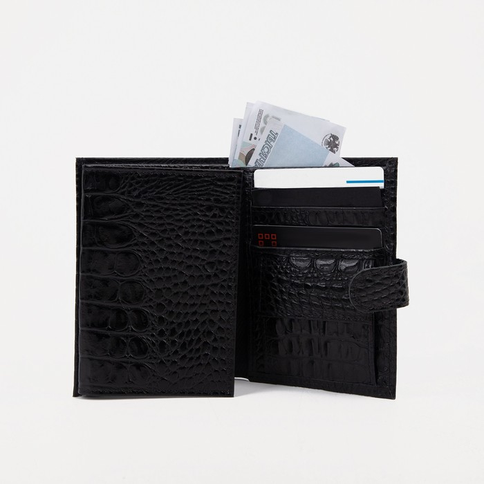 Портмоне мужское на кнопке, отдел для автодокументов и паспорта, цвет чёрный