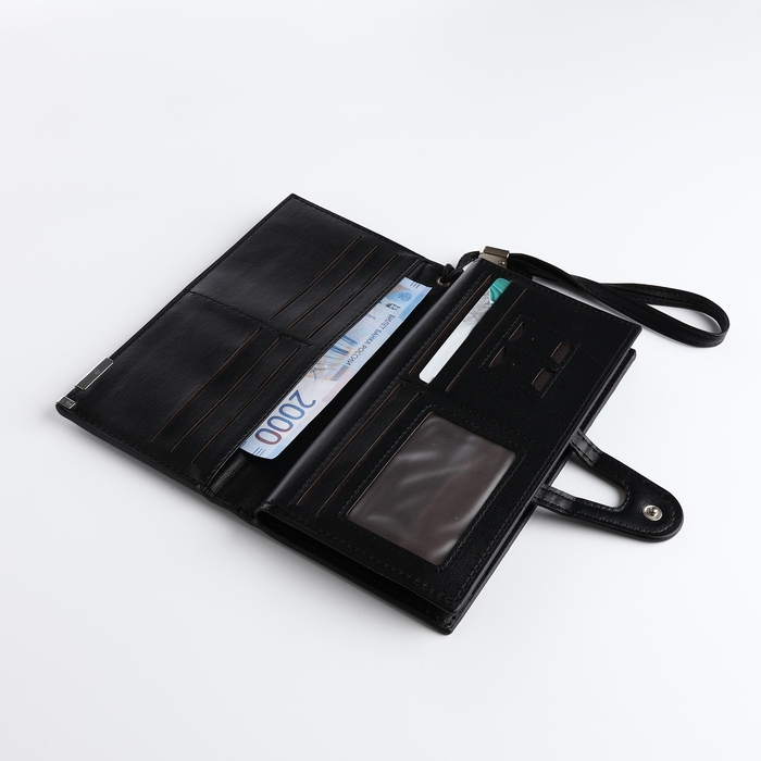 Портмоне мужское на магните, отделение для сим-карт, цвет чёрный