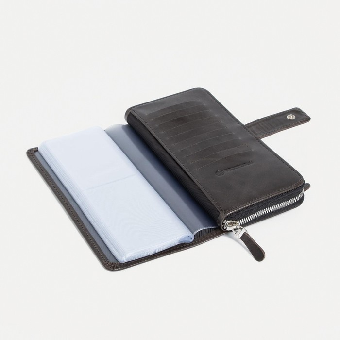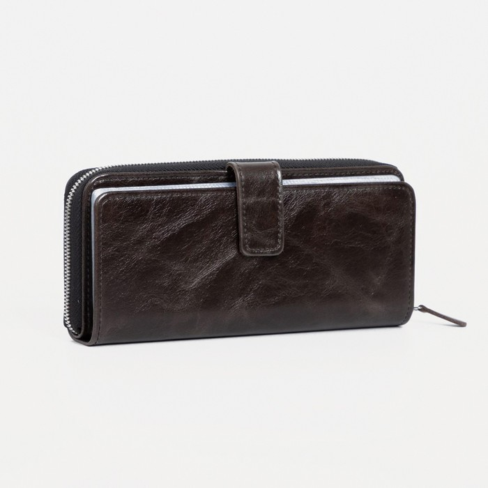 Портмоне мужское на молнии для купюр TEXTURA, для карт, для монет, цвет чёрный