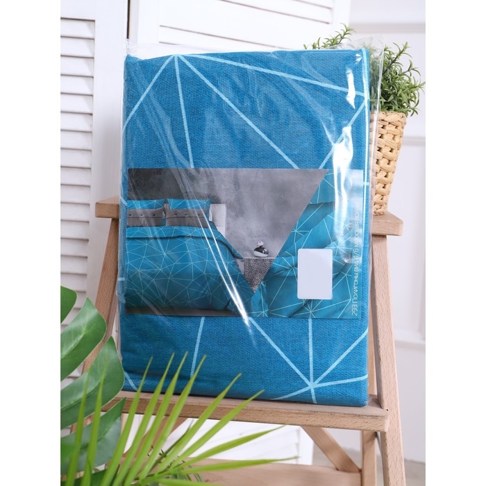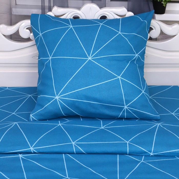 Постельное бельё 1,5 сп Полигон, морская волна, 150х210 см, 150х210 см, 70х70 см, бязь, 105 г/м, 100% хлопок