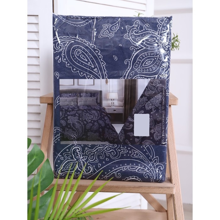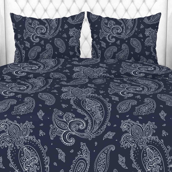 Постельное бельё 1,5 сп Узоры востока, тёмно-синий, 150х210 см, 150х210 см, 70х70 см, бязь, 105г/м, 100% хлопок