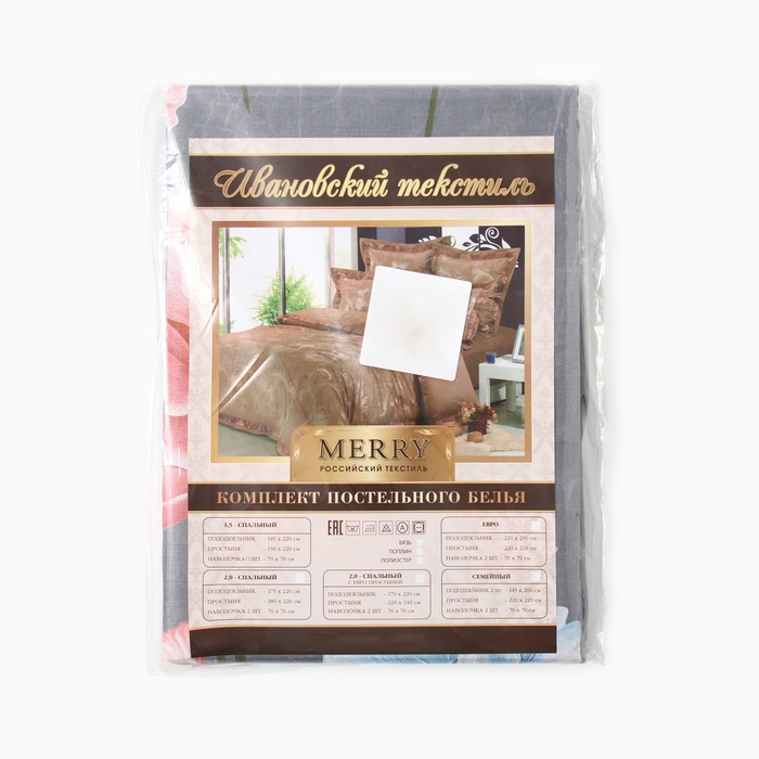 Постельное бельё 1,5сп MERRY 145х220см, 150х220, 70х70см 1шт, микрофибра 70г/м, пэ100%