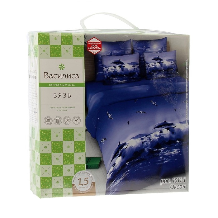 Постельное бельё 2сп Василиса Океан 175х215см, 200х216см, 70х70см 2шт, 100% хлопок
