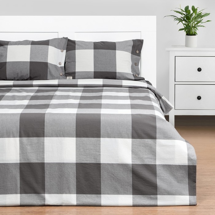Постельное бельё Этель 2 сп «Серая клетка» 180х210 см, 220х240 см, 50х70-2шт,100% жатый хлопок,140гр/м2
