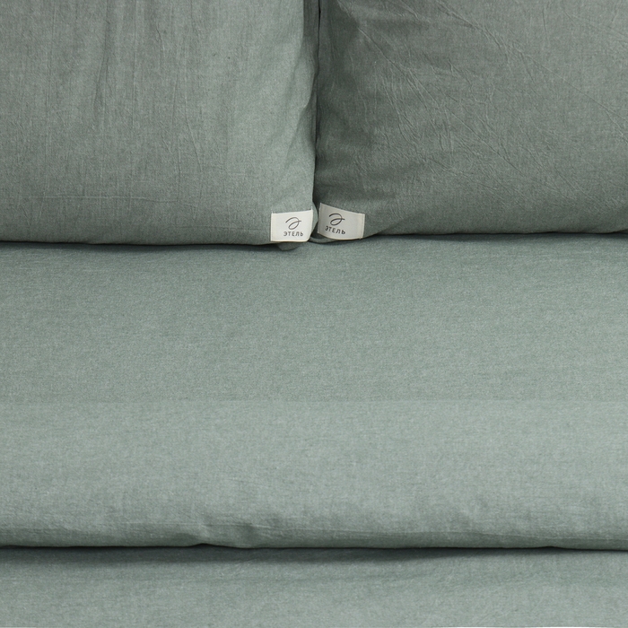 Постельное бельё Этель Denim 2 сп, 180х210см, 220х240см, 50х70-2шт, цвет оливковый, жатый хлопок, 140 г/м2