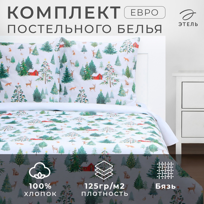 Постельное бельё "Этель" евро "Домик в лесу" 200х217 см,220х240 см,70х70 см -2 шт,бязь 125 г/м2