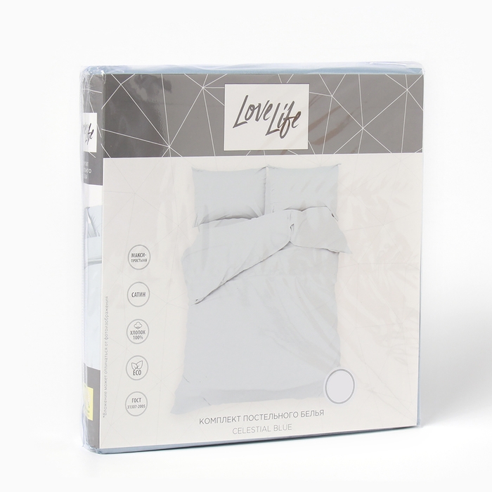 Постельное бельё LoveLife 1,5сп Celestial blue 143х215см, 150х225см, 50х70см-2шт, 100%хлопок, сатин, 125г/м²