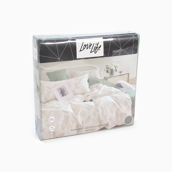 Постельное бельё LoveLife 2сп "Ветки", 175*215см, 200*225см,50*70см-2шт,100%хлопок, сатин, 125г/м²