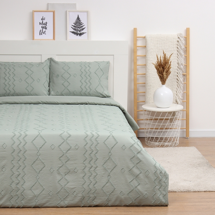 Постельное бельё LoveLife Tufting 2сп "Орнамент" 175*215см,200*230см,50*70см-2шт, цвет зеленый, 110 г/м2
