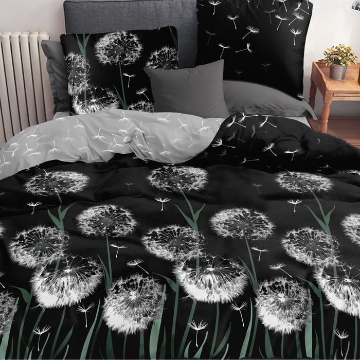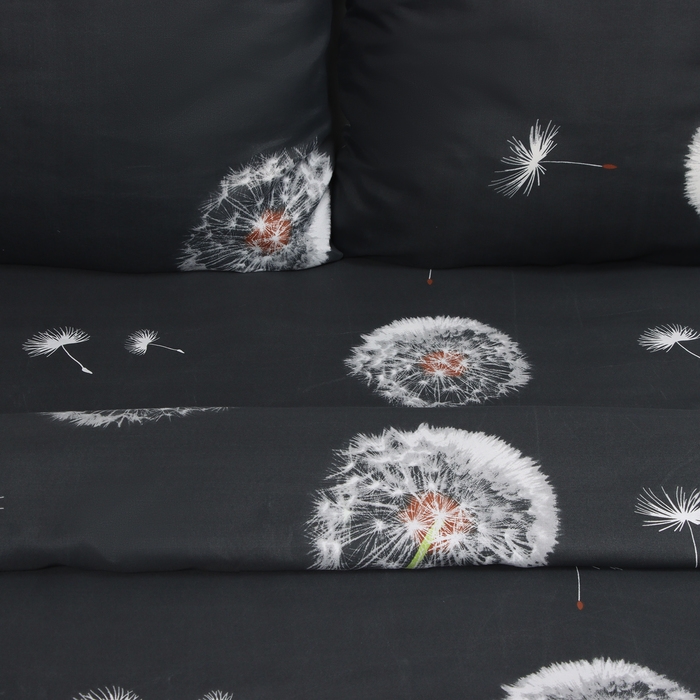 Постельное бельё Павлайн 2сп Одуванчики черн 175х215, 180х215, 70х70см 2шт полисатин 70г/м, полиэстер 100%