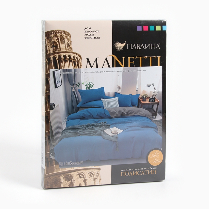 Постельное бельё Павлайн Евро небесный+серый 200х220, 200х220, 70х70см 2шт полисатин 70г/м, полиэстер 100%