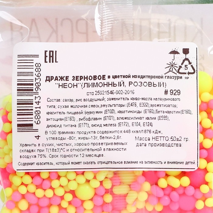 Посыпка кондитерская с эффектом неона в цветной глазури "Лимонный, розовый", 50 г