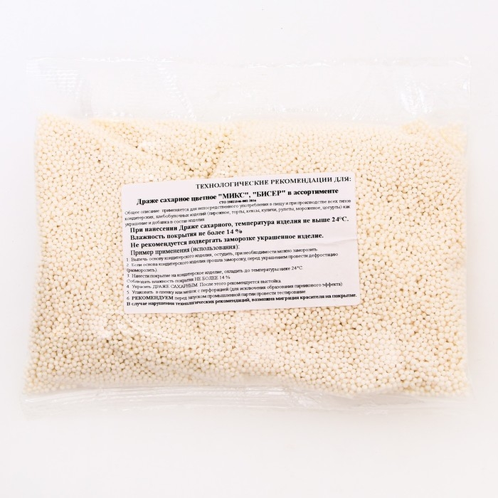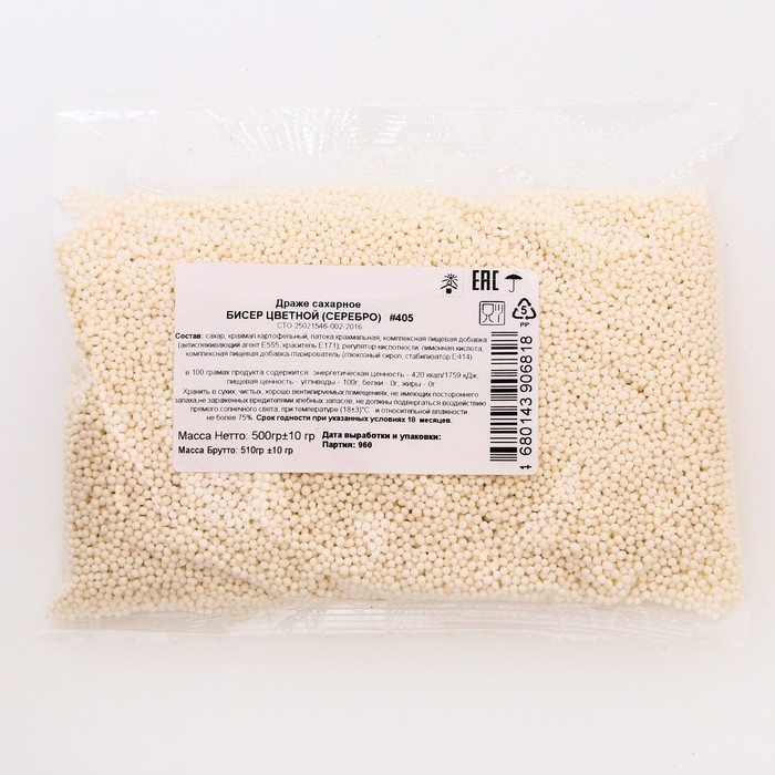 Посыпка кондитерская с мягким центром "Бисер", серебро, 500 г