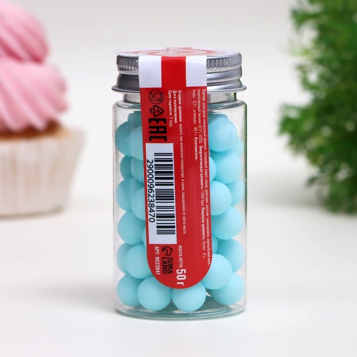 Посыпка кондитерская «Шарики», 10 мм, синий матовый, 50 г