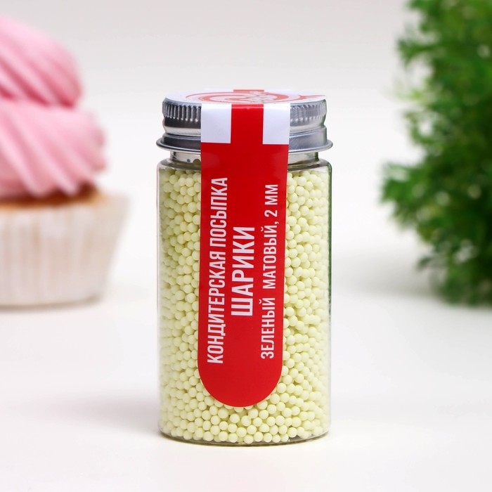 Посыпка кондитерская «Шарики», 2 мм, зеленый матовый, 50 г