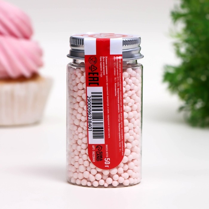 Посыпка кондитерская «Шарики», 4 мм, розовый матовый, 50 г