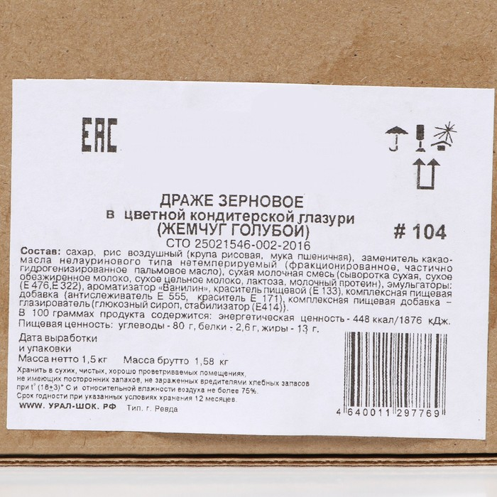 Посыпка кондитерская "Жемчуг" взорванные зерна риса в цветной глазури, голубой, 1,5 кг