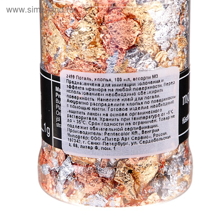 Поталь в хлопьях золото/серебро/медь, 100 мл, Pentart, М3 2499