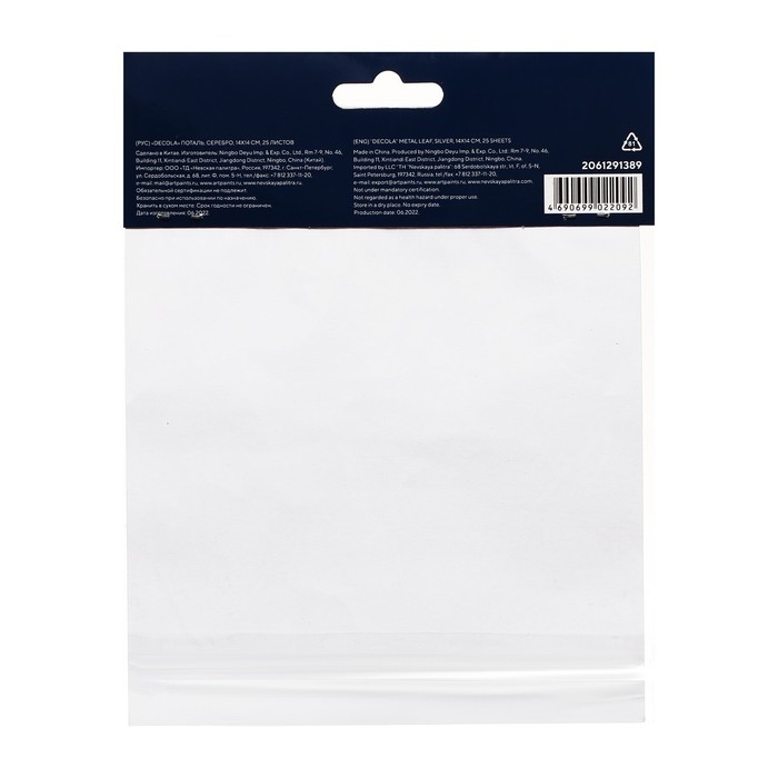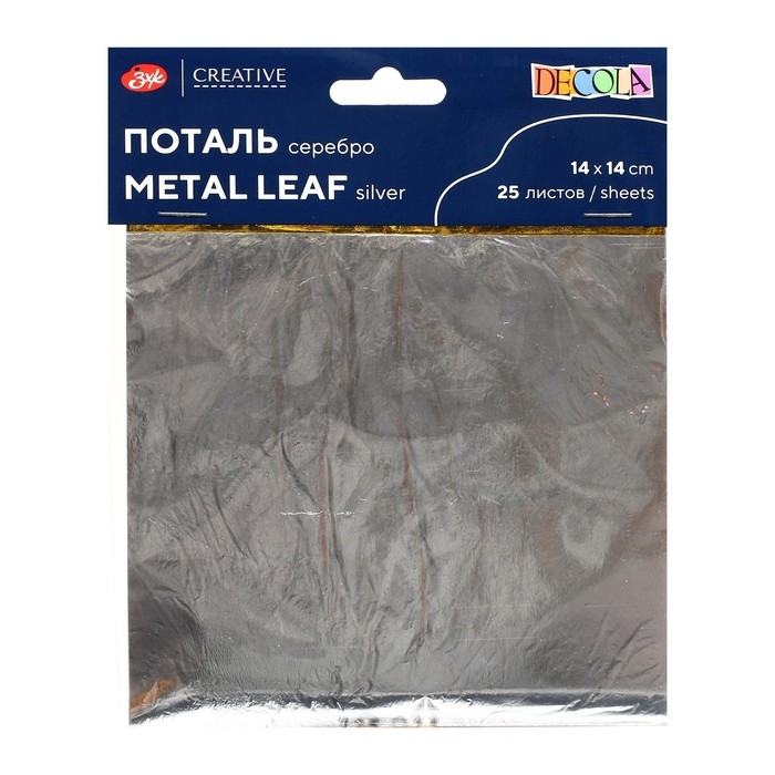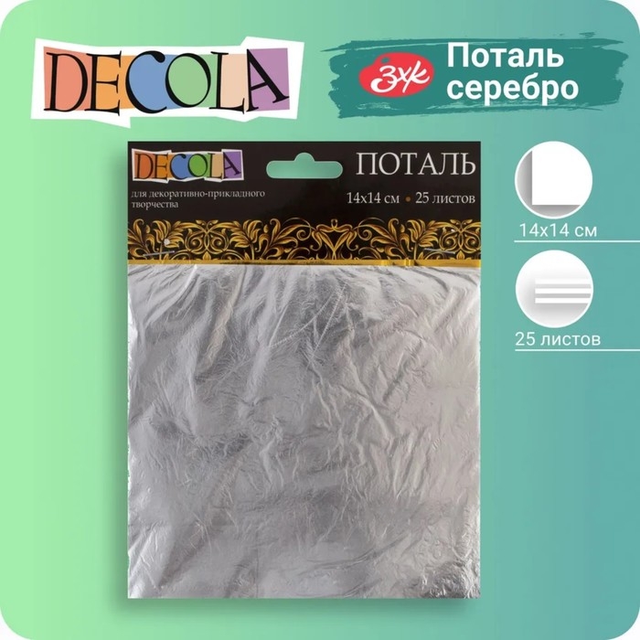 Поталь в книжке для серебрения ЗХК "Decola", 14 х 14 см, 25 листов, имитация серебра, (плотность 0,03 мкн), 2061291389