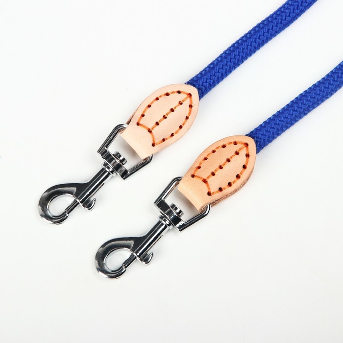 Поводок 8 мм со своркой на 2 собак, 73 + 2х57 см, полиэстер и натуральная кожа, синий