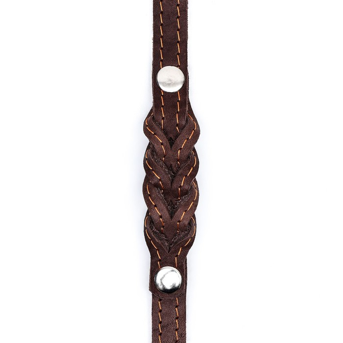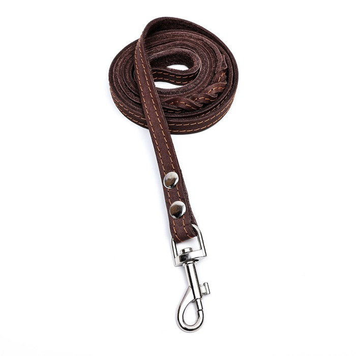 Поводок изготовлен из полосы кожи, прочный и эластичный. Для захвата предусмотрена удобная петля. Чтобы пристегнуть поводок к ошейнику, предусмотрен надежный карабин.
