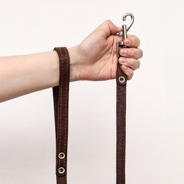 Поводок кожаный однослойный длинный, 2 м х 1,6 см, коричневый