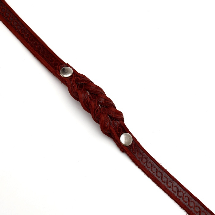 Поводок изготовлен из полосы кожи, прочный и эластичный. Для захвата предусмотрена удобная петля. Чтобы пристегнуть поводок к ошейнику, предусмотрен надежный карабин.